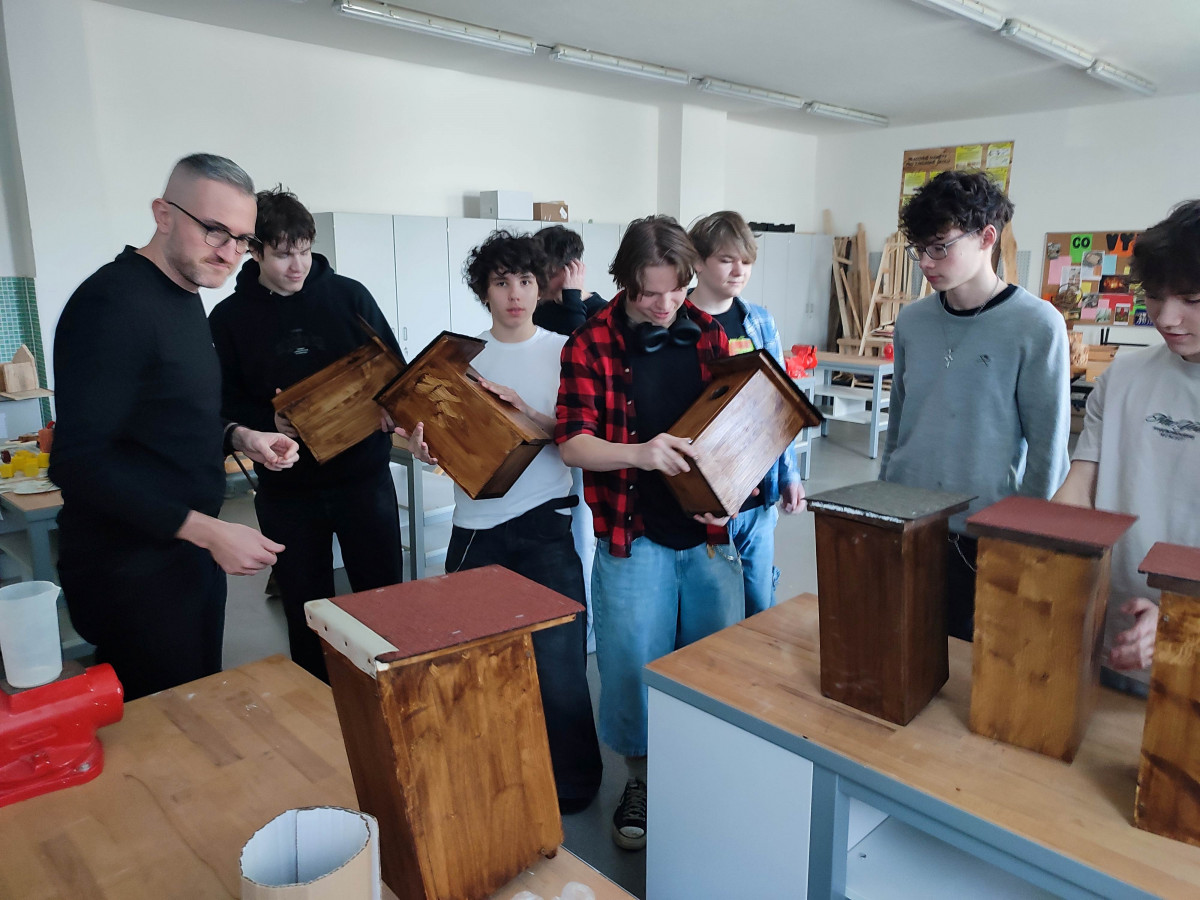 Celkem jedenáct nových budek nahradilo původní, které už dosloužily. „Některé byly bez střechy, jiné bez dna, další rozpadlé vlivem počasí. Do obnovy se pustili deváťáci. V dílnách opravovali, ale hlavně vyráběli nové budky, které odpovídají konkrétním druhům ptáků. Liší se velikostí i tvarem vletového otvoru tak, aby poskytly bezpečné zázemí například sýkorkám nebo dalším drobným pěvcům,“ prozradila ředitelka školy Miroslava Hoňková.